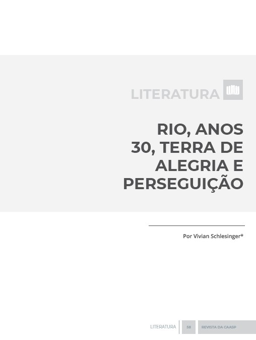 LITERATURA RIO, ANOS 30, TERRA DE ALEGRIA E PERSEGUIÇÃO Por Vivian Schlesinger* LITERATURA 58 REVISTA DA CAASP