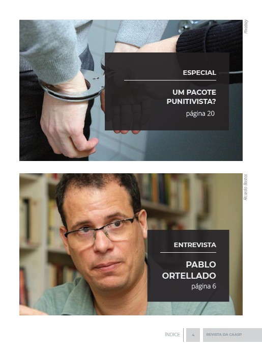 ESPECIAL UM PACOTE PUNITIVISTA? página 20 ENTREVISTA 4 REVISTA DA CAASP ÍNDICE PABLO ORTELLADO página 6 Ricardo Bastos Pixabay
